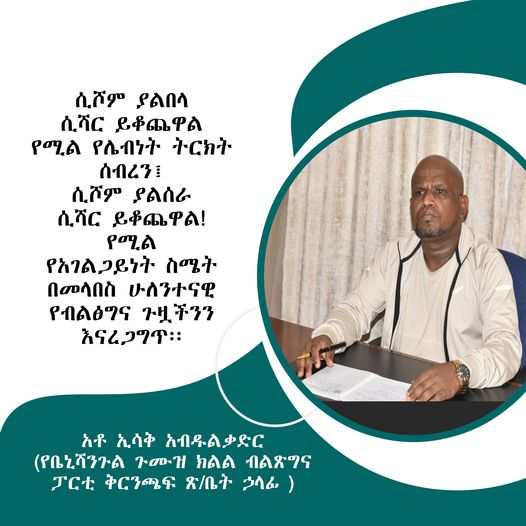 አትስረቅ…!አትስረቅ…!አትስረቅ ************************ የቤኒሻንጉል ጉ/ክ/መ/የስነምግባር ና ጸረ-ሙስና ኮሚሽን በአሶሳ ዞን ስር በሚገኙ የሐይማኖት ተቋማት የጸረ-መስና ንቅናቄ ጥምረት የ2014 የመጀመሪያው አጋማሽ አፈጻጸም ዙሪያ በሆሞሻ ውይይት ተካሄደ ። በወይይቱ ላይ በአሶሳ ዞን ስር ከሚገኙ ወረዳዎች የመጡ የሐይማኖት አባቶችና የስነምግባር መከታተያ ክፋል ባለሙያዎች ተሳታፊ ሁነዋል። በውይይቱ ላይ በሁሉም የእምነት አስተምህሮ መስረቅ ሀጥያት መሆኑን ያነሱት አባቶች ለዚህም በተከታዮቻቸው ዘንድ እንዲ […]