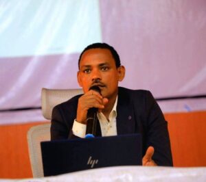 በዚህ መድረክ የቤኒሻንጉል ጉሙዝ ክልል የመንግሥት ኮሙኒኬሽን ጉዳዮች ቢሮ ኃላፊ አቶ መለሰ በየነ ለተሳታፊዎች ሰነድ እያቀረቡ ነው፡፡